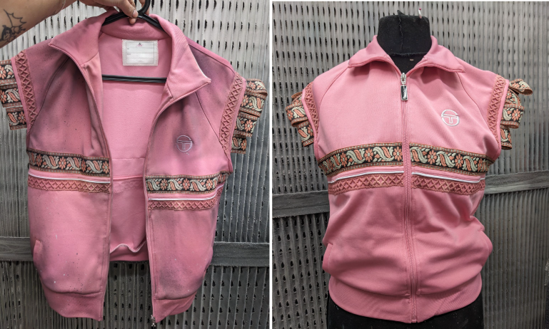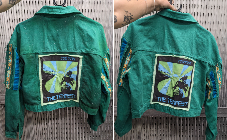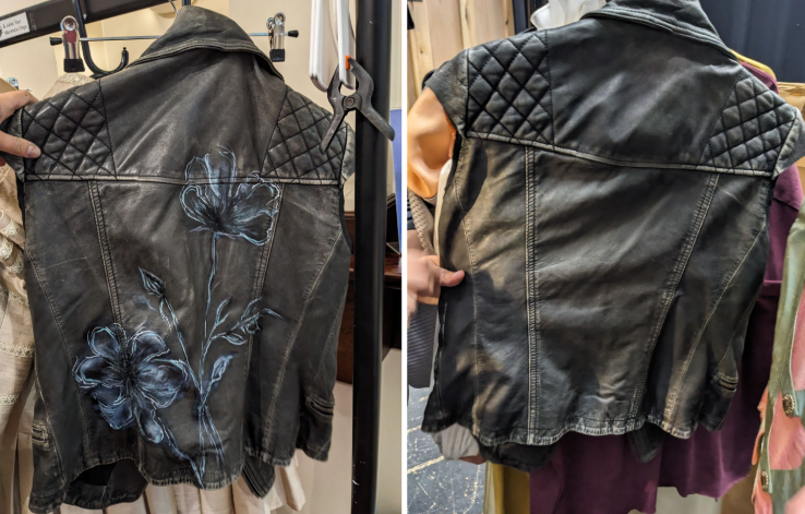 Hand painted the lettering and roses on Rome's leather jacket (principle & swing)
